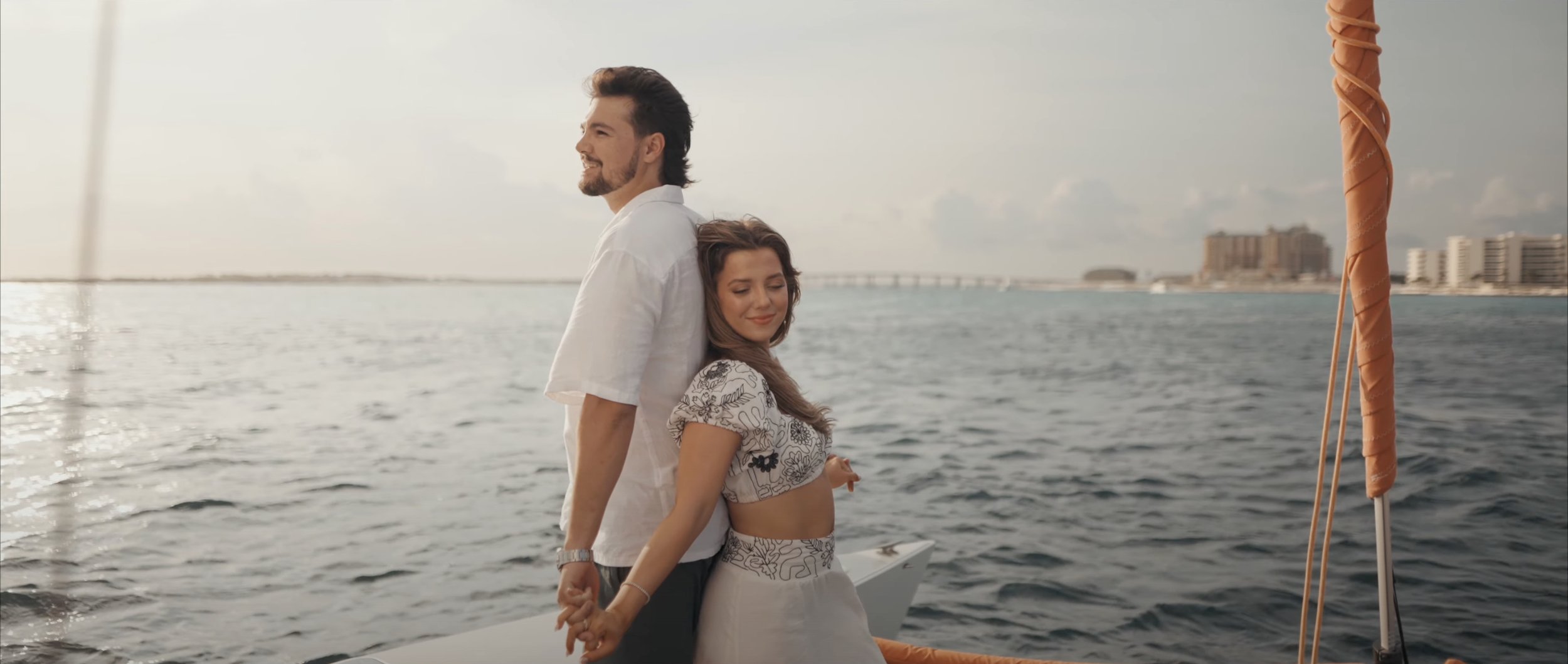 Anthony proposed to Mya in a truly breathtaking setting, aboard a sailboat in Destin, Florida. As the golden rays of the sun danced on the glassy Clearwater and the beautiful bays of Destin surrounded them, the moment was nothing short of magical. The drone footage around Crab Island captured the elegance of the scene, highlighting the stunning natural beauty that made their engagement unforgettable.